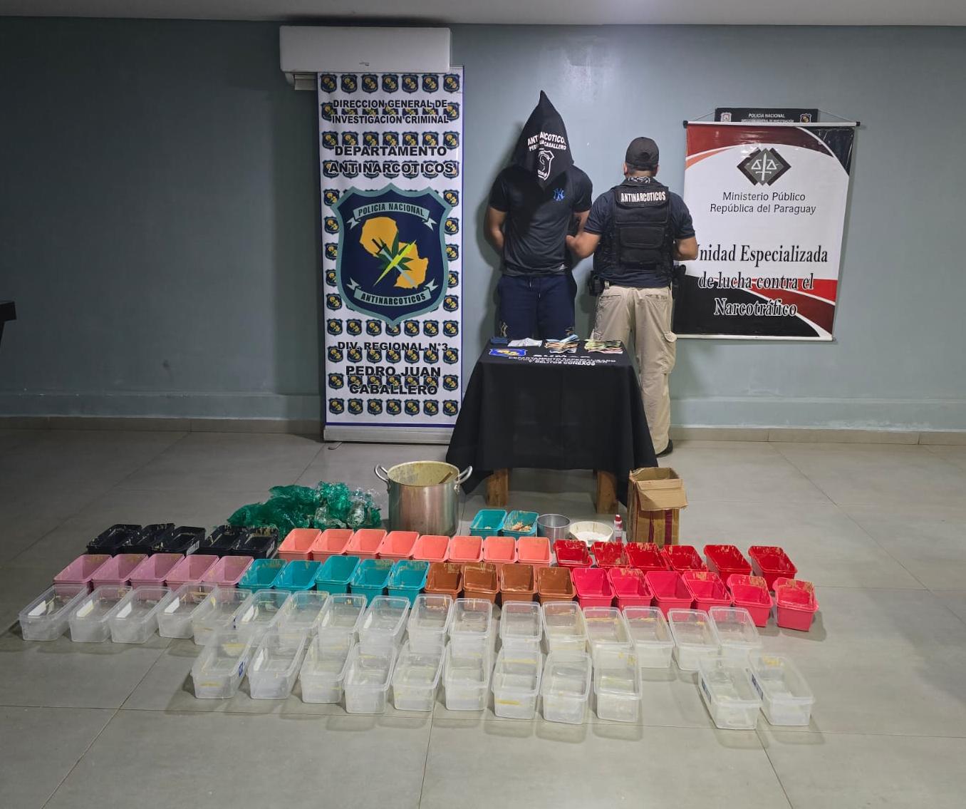 Un operativo antidrogas permitió la detención de un ciudadano brasileño y la incautación de importantes evidencias vinculadas al procesamiento de estupefacientes, en una vivienda del barrio General Bernardino Caballero.
