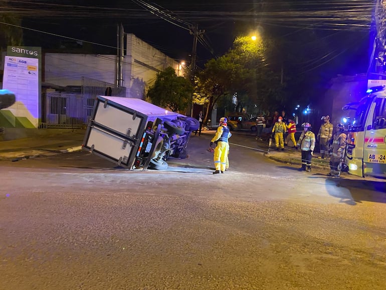 Un camión ligero volcó tras chocar con un automóvil en la intersección de General Santos y Concordia, en Asunción. A pesar de la fuerza del impacto, los conductores y sus acompañantes solamente presentaron lesiones menores y optaron por no ser llevados a un centro médico.