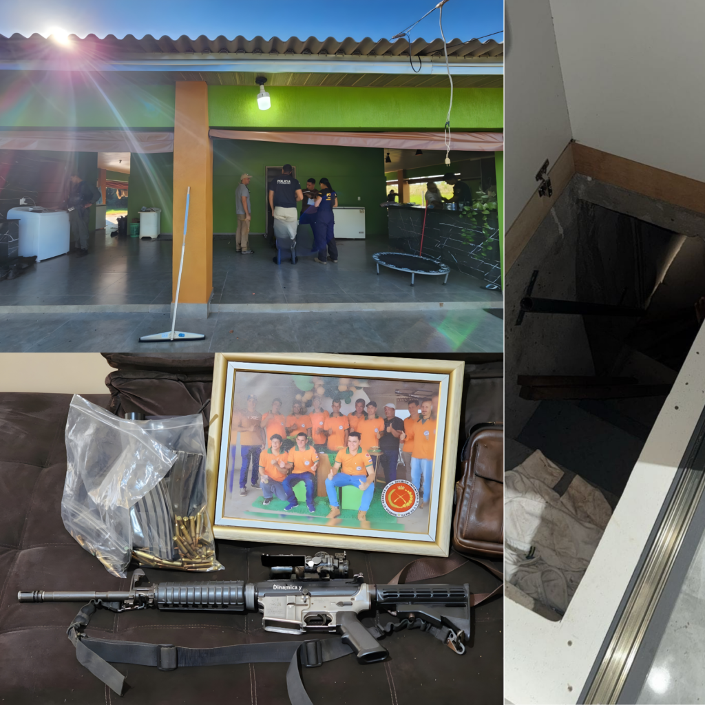 Durante la intervención, los uniformados incautaron dos fusiles calibre 5.56 mm —uno de la marca Colt M4LE y otro Ruger—, además de cargadores con municiones, una mira óptica y un radio comunicador. También fueron hallados una camioneta Toyota Hilux y un automóvil Kia Cerato, junto con celulares, joyas, documentos y chapas de vehículos de origen brasileño.