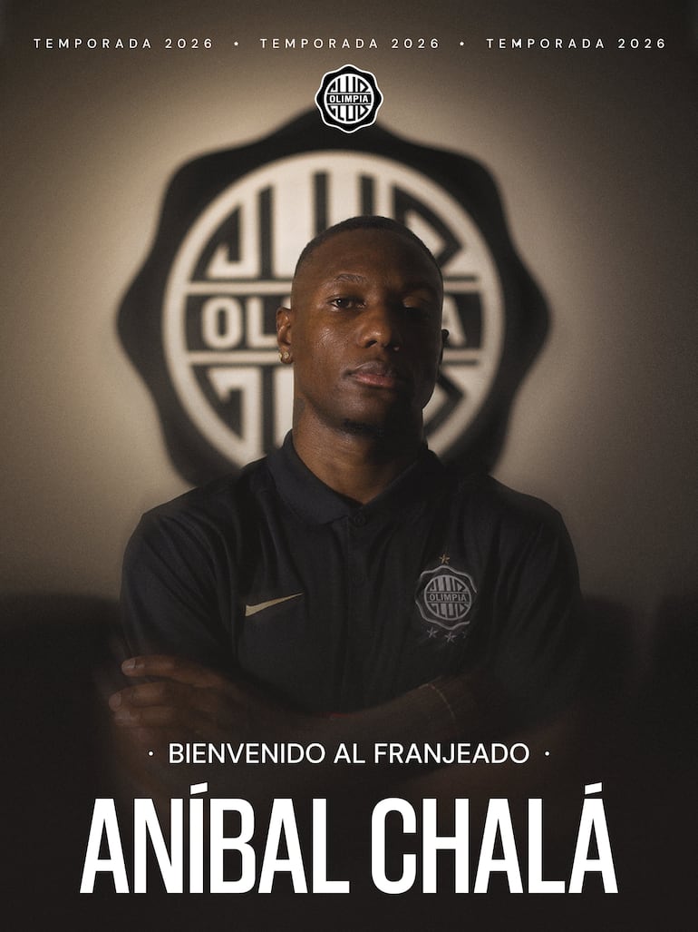 Olimpia ha confirmado la incorporación del lateral ecuatoriano Aníbal Chalá (29 años) y, al iniciar la última semana del año, se suma la noticia del fichaje del delantero argentino Franco Alfonso (23), cuyo pase pertenece a River Plate. Alan Rodríguez empezó a entrenar desde este lunes por la mañana.