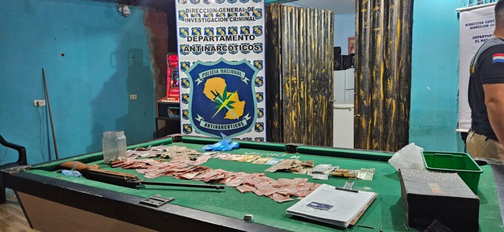 Entre las evidencias incautadas se destaca un rifle de aire comprimido calibre 22, así como una tarjeta con residuos de sustancia blanquecina que, al ser sometida a análisis primario de campo, arrojó resultado positivo a supuesta cocaína. Además, se incautó dinero en efectivo de distintas denominaciones que totaliza la suma de 3.572.000 guaraníes .